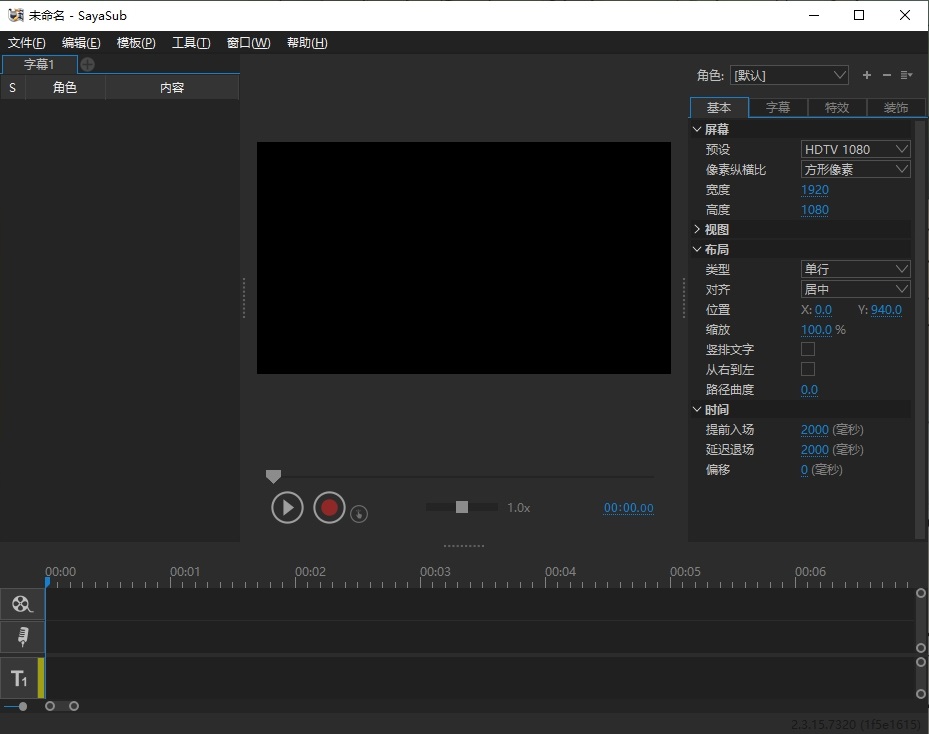4、编辑字幕时可以设置详细的字幕属性(布局、字体、显示、是境等)和模板特效(走字特效、指示灯设置等)。