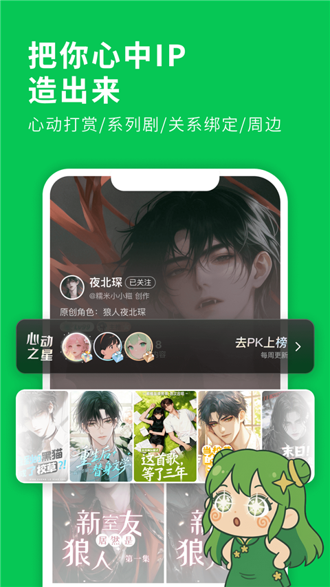 1、多元玩法 你可以在造梦次元与海量角色,在不同的故事设定、趣味玩法模拟器中,自由畅玩。 2、特色生图 依托造梦次元创作者的脑洞创意,你可在造梦次元中快速生成有趣的图片和视频,把脑海中想象变成作品。 3、角色经营 造梦次元为用户提供了不同的玩法模板,让你能为粉丝持续创作不同的玩法作品,经营你的角色IP。造梦次元app怎么创作角色