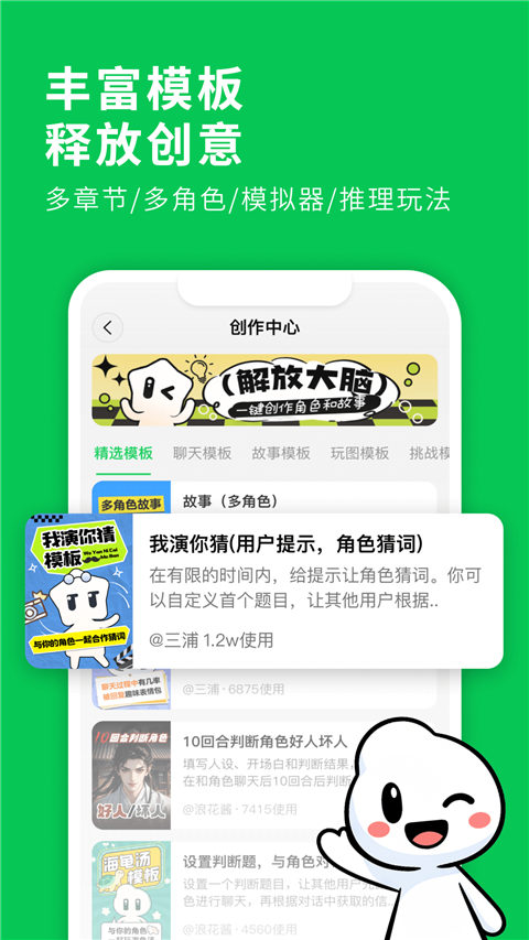 2、选择一个你感兴趣的模板,除了普通的聊天模板,还有多角色聊天室等各种设定的模板。