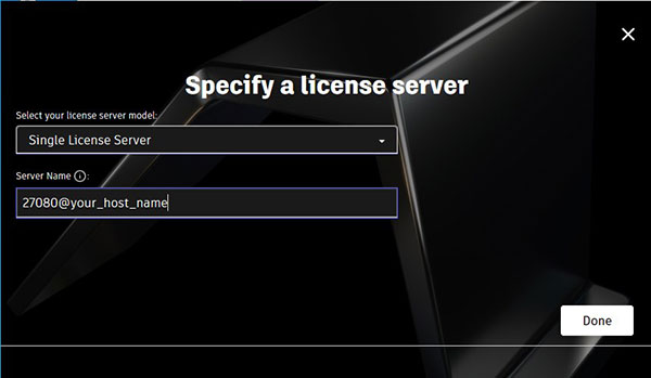 - 许可证服务器模型:单一许可证服务器。