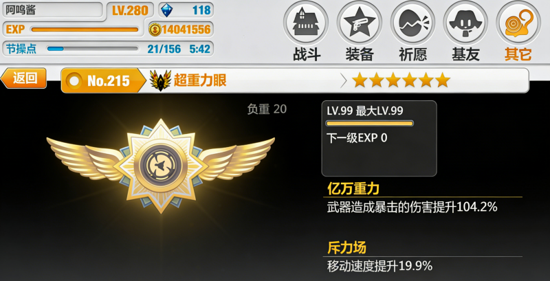 ☆非常不建议一天将超重力眼肝出来!笔者第一天没注意要消耗金币,等发现的时候500w金币已经不翼而飞了!