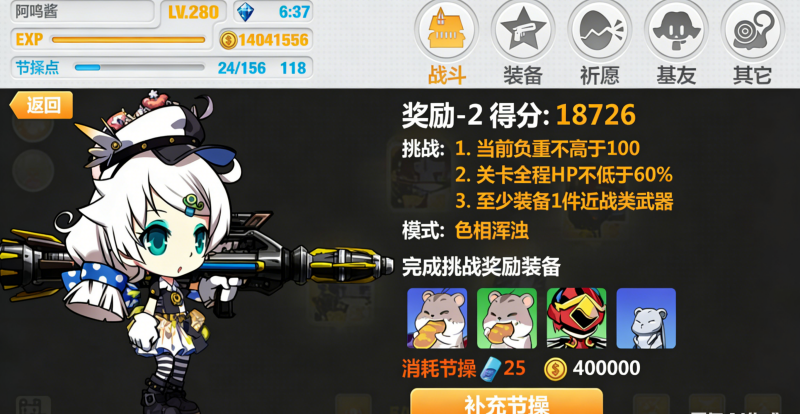 以里世界3线、等级为280的玩家为例,性价比最高的图是奖励关(这里推荐奖励1和奖励2)