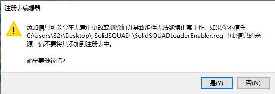 8、运行“SolidSQUADLoaderEnabler.reg”并确认将信息添加到 Windows 注册表中。