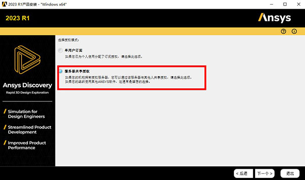 10、安装ANSYS SpaceClaim 2023R1 Win64,当询问“选择许可模式”时,选择“服务器共享许可证”。