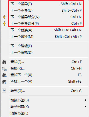 Ctrl+N:快速定位 使用Ctrl+N可以快速定位到对比文本的每一个不同之处,您可以按照个人比较文本的要求,点击箭头图标进行左右两侧窗格的差异文本整合工作。您也可以单击工具栏“编辑”按钮,直接在视图窗格修改差异文本内容,如有错误操作可以使用Ctrl+Z撤消。