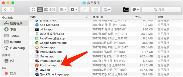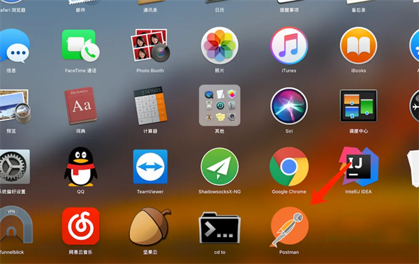 2、然后在程序界面找到postman打开即可,或者通过快捷键command+空格输入postman搜索打开也可以。