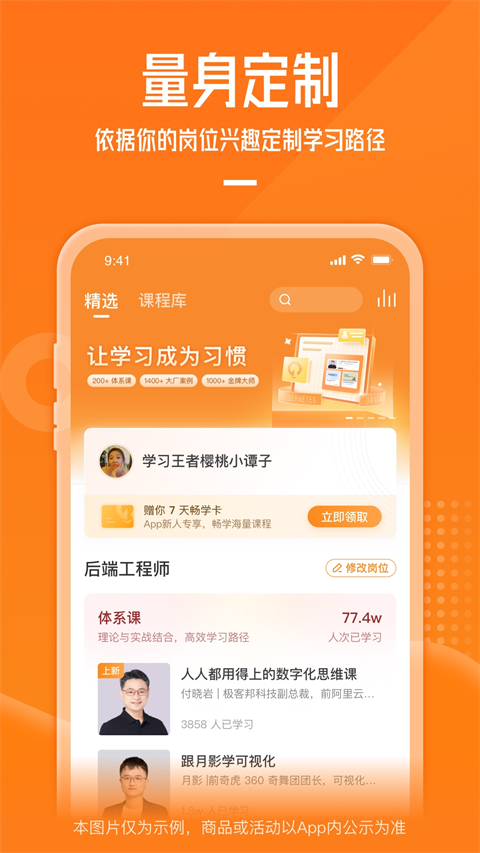 1、「新人福利」 新用户首次登录应用即可获得7天课程体验卡,畅学190+热门课程。体验期后,购买超级会员,可继续享用课程免费学习权益,或使用极客币单独购买所需课程。 2、「精品课程」 这里聚集了付晓岩、张雪峰等 1000+ 行业高手专家,从大咖精品课程到公开课,从190+ 前沿实践案例到800+ 每日小课,为你打造随身学习引擎。每门课都经由业内大牛和专业教研精心打磨,只为让你的数字技术持续提升。 3、「沉浸体验」 精心设计的文章排版,个性化的阅读风格,为你打造沉浸式学习体验。你可以使用划线、评论、收藏的功能进行深度学习,也可以在碎片时间听音频,看视频。 4、「学习社群」 极客时间提供了留言、社群等方式,为大家提供共同学习、共同探讨的渠道。 5、「企业服务」 极客时间企业版是一站式数字化技术学习平台,通过版权课程、智能学习平台和学习运营服务,助力企业打造数字化团队热门课程