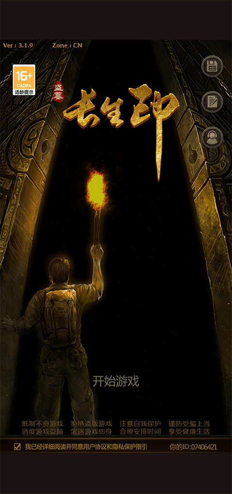 1、打开盗墓长生印最新版本,点击开始游戏;