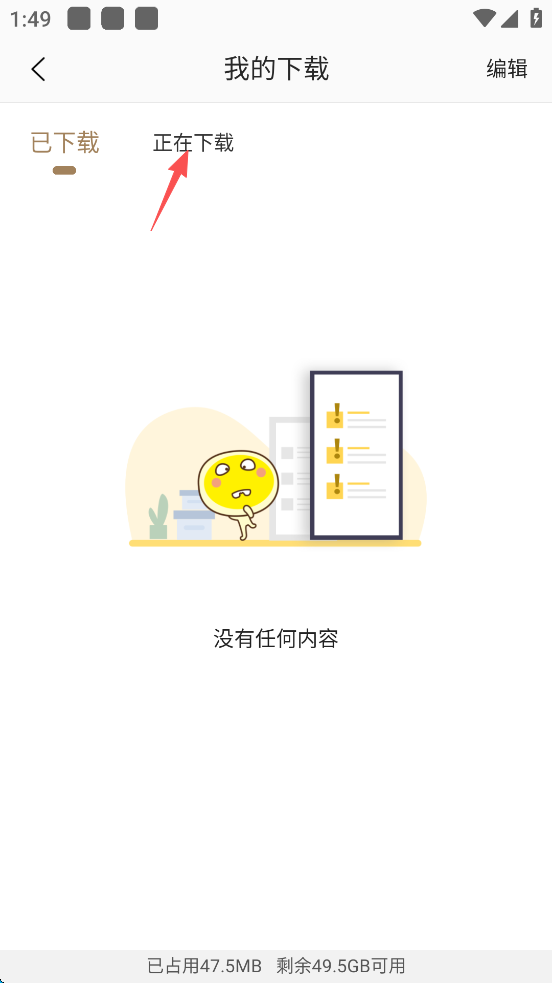 6、点击屏幕上方的“正在下载”。