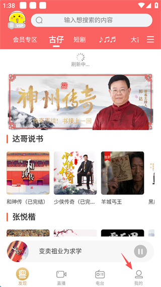 1、点击屏幕下方的“电台”。