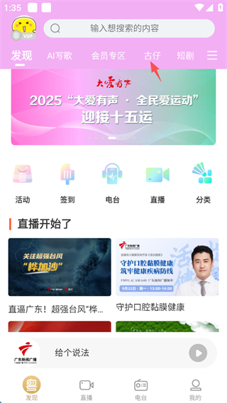 1、点击屏幕上方的“古仔”。