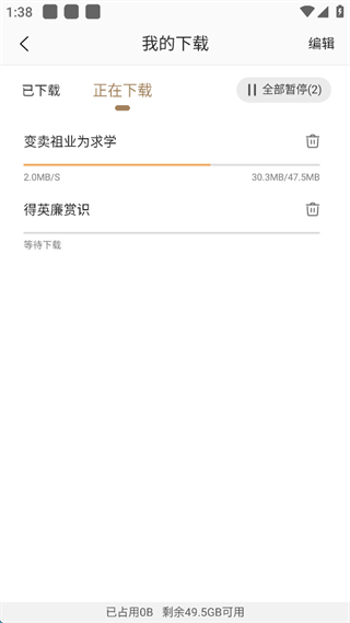 7、即可看到下载中的节目了。