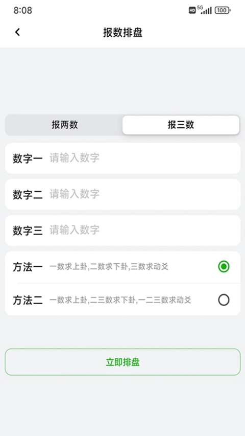 2、小编选择的是报数排盘,你可以根据需求输入数字,点击立即排盘;