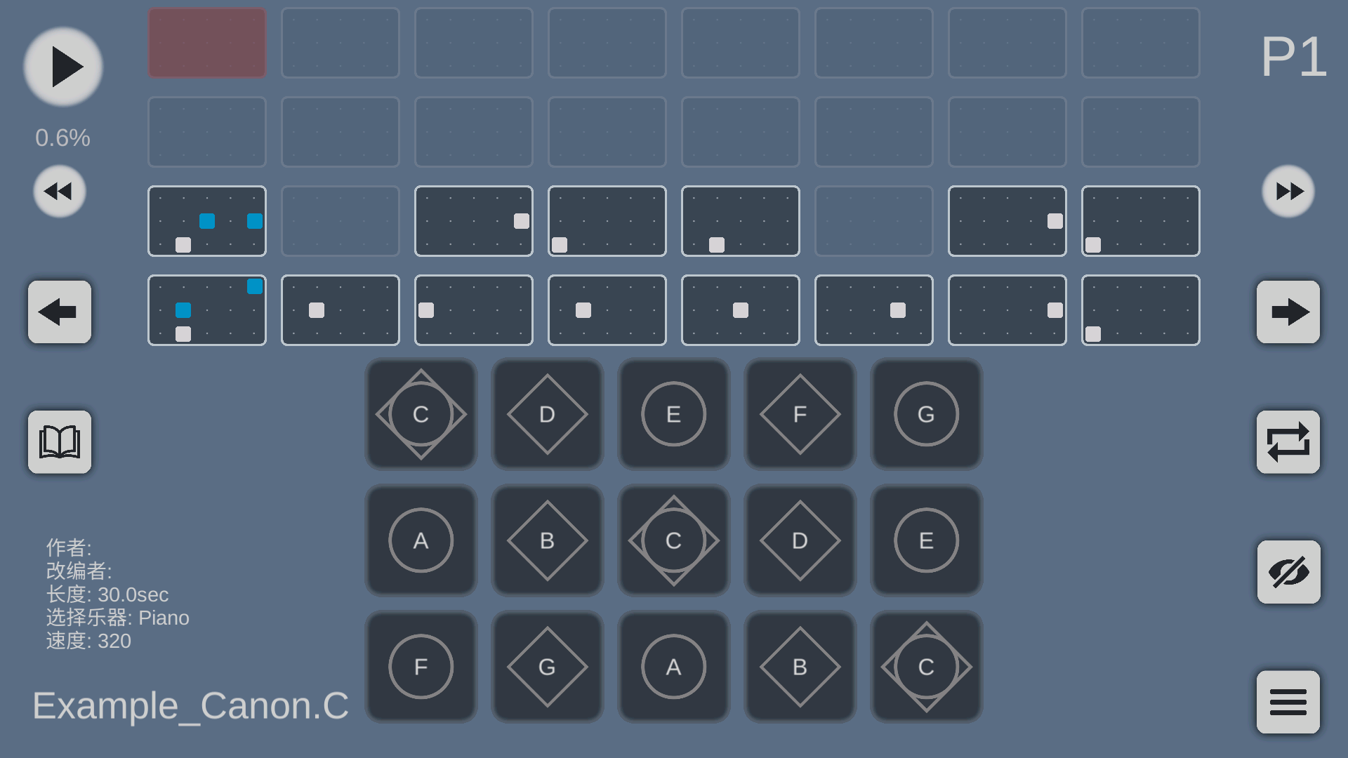 一、作曲模式(Compose Mode)——用于创建乐谱并进行试听 1、乐谱保存与加载 2、播放 / 暂停 3、节拍器 4、双层音轨系统 5、对乐谱片段进行复制、剪切、擦除和删除 6、可选择 BPM、音高和乐器 二、练习模式(Practice Mode)——用于练习已制作或导入的乐谱 1、加载乐谱 2、练习系统(如指定段落循环、隐藏按键等功能) 3、调整演奏垫大小,并切换乐谱显示模式 4、播放 / 暂停乐谱 5、节拍器 6、可选择 BPM、音高和乐器 三、乐器演奏模式(Instrument Pad Mode)——将乐器按键拆分为独立演奏垫,可自由演奏 1、选择音高和乐器 2、调整演奏垫大小 3、节拍器 四、【其他功能】 1、洞穴混响效果 2、延迟音效同步skystudio光遇练琴软件如何切换中文语言