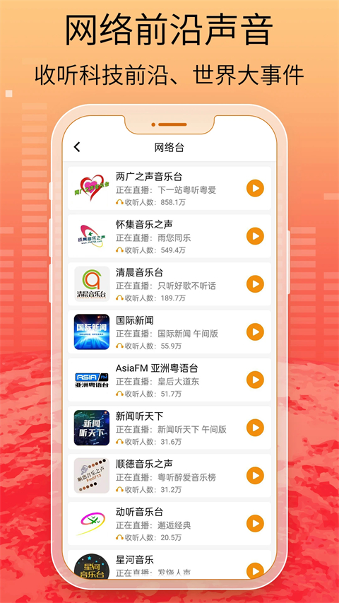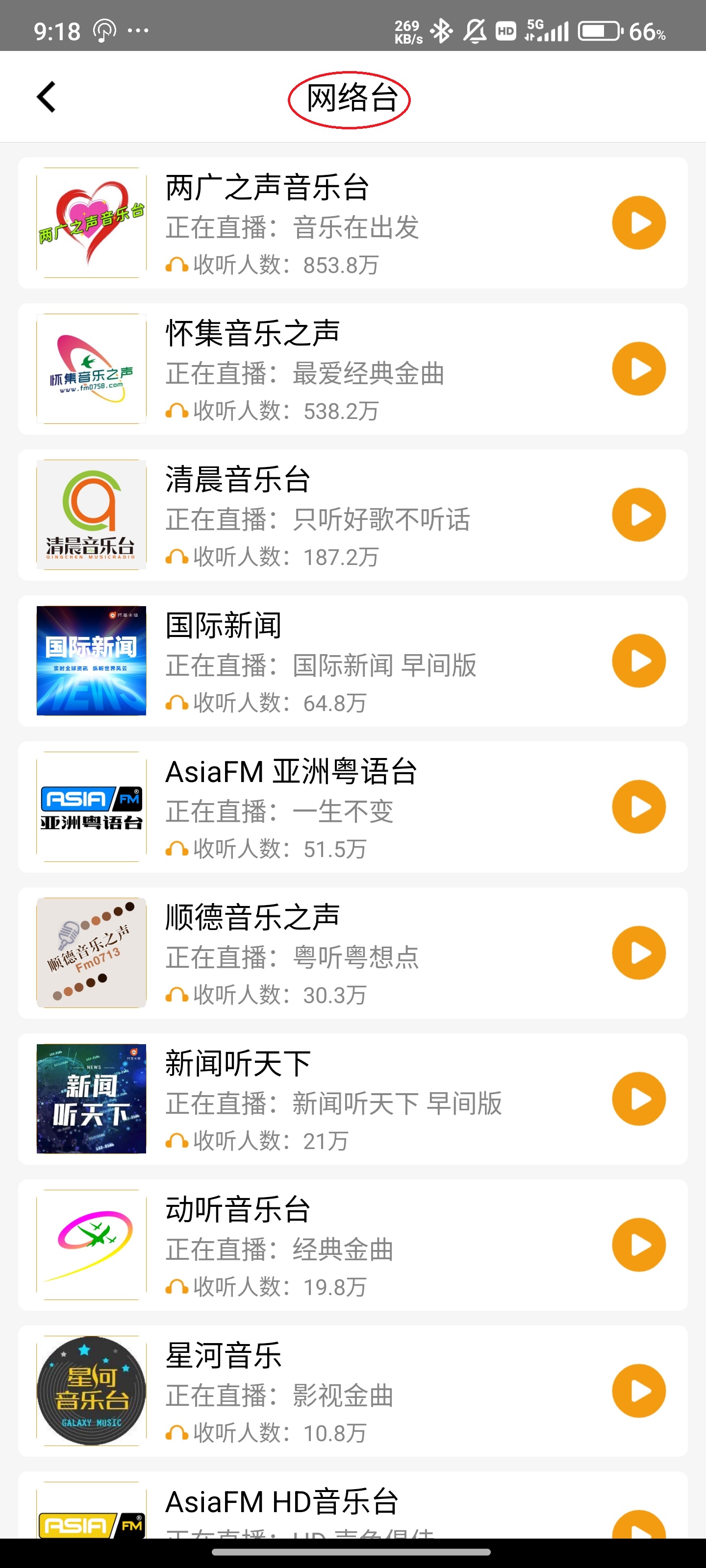 6、除此之外,还有热门的网络台可供用户收听选择。