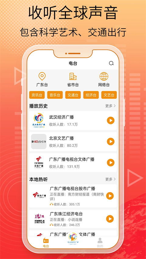 1、直接进入首页就能选择和搜索广播,即点即看省时省力。 2、每天都会更新最热门,收听广播也能与时俱进。 3、提供人性化的导航系统,能够帮助你快速精准的找到需求目标。 4、每个电台的节目列表都能一目了然,节目时间、时长都能轻松掌握。 5、可以将喜欢的节目广播进行收藏关注,方便你下次进行收听。软件亮点