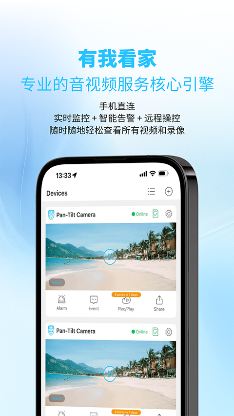 1、支持远程回放设备的录像。 2、支持现场录像及查看。 3、支持按用户登录和设备登录两种方式。 4、支持多通道切换(最多64通道)。 5、支持云台上下左右、聚焦、变倍及光圈控制。 6、可以用手机通过WIFI和GPRS实时观看视频。 7、支持设备连接参数配置、修改、删除。 8、支持设备序列号、IP地址和动态域名访问。有我看家监控怎么连接手机