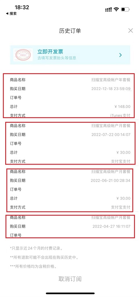 4、选择要开发票的订单,长按红框区域,即可复制订单号。