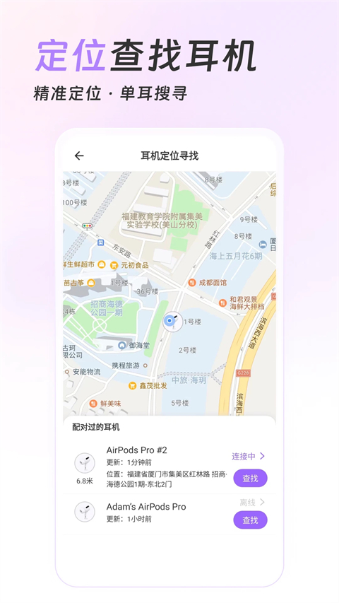 3、第二个当我们耳机丢失了,在这里就可以进行寻找,帮你以最快的速度找到心爱的耳机;