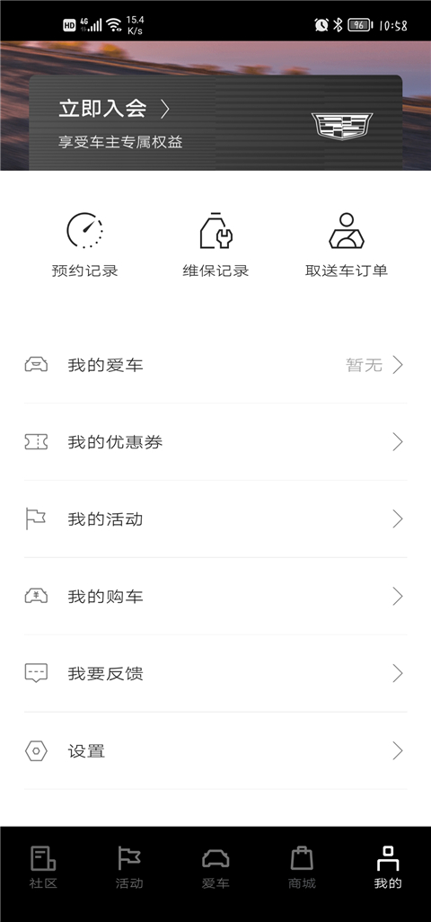 1、在本站下载安装并打开凯迪拉克APP,进入软件首页,找到我的点击进入页面。
