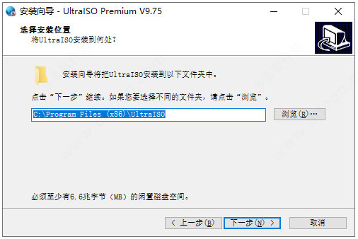 2、双击uiso9_cn.exe运行安装,进入安装路径,默认安装路径【C:\Program Files (x86)\UltraISO】,可自由选择路径。