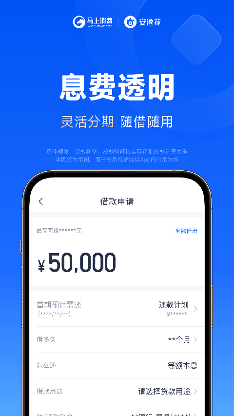 1、借款利息从哪天开始计算? 自借款成功发放当天(即借款从马上消费金融转出)起开始计息。 2、多余还款,如何取出? 多余的还款可在借款页面将大于总额度的金额取出。只取出多还金额不收取利息和手续费,但超出多余还款部分的金额按照借款规则正常计算息费。 3、安逸花可以用于炒股、投资吗? 您的借款资金仅能用于个人日常消费,不得用于购房、购车、证券投资等非日常消费行为,否则视同违约,马上消费金融有权按照合同约定借款提前到期、收取罚息并取消您的借款资格。 4、借款没有收到短信提醒,我还有什么途径可获得借款通知? 借款提示成功后,收不到短信请您查询您的银行卡余额 5、为什么我再次借款时,不可以选择新的收款银行卡? 为了您的资金安全,您的收款卡会默认为首次借款的银行卡。如果您还有未还清的借款,则只允许使用之前的收款卡来借钱。如因特殊原因必须换卡,您可还清名下所有借款后重新申请借款。 6、我的借款已逾期,我现在就要还款,如何操作? 您可以随时进入 "安逸花",点击"还款",根据页面提示完成还款即可。 7、我在还款日当天存入足额资金,但却扣款失败,这是怎么回事,该如何解决? 按照合同约定,我们会在还款日凌晨从您的收款银行卡自动代扣还款,请至少在还款日前一天确保还款账户资金足够归还当日需还金额,以免扣款失败。您可以随时进入 "安逸花",点击"还款",根据页面提示完成还款即可。 8、如何查询还款记录? 还款成功后,登录安逸花APP 我的借款页 查看。 9、我开通了安逸花,马上消费金融会查询我的征信报告吗? 当您首次使用安逸花,填写申请信息,勾选同意《借款协议》,输入短信验证码验证成功后,即代表授权我司去人民银行征信中心和合法的征信机构查询您的征信报告和征信信息。 10、为什么我已经还清所有的借款,但是征信报告上显示还有欠款? 从您还清所有借款到人行报告提现贷款余额为0,需要一定时间。请您稍等后再次查看。 11、每月自动还款时,要从我的银行卡自动扣钱,这样是否安全? 我们只会在您还没有完成本期还款的情况下进行自动扣款,每次扣款金额为您当期需还款金额,自动扣款是非常安全的。更新日志
