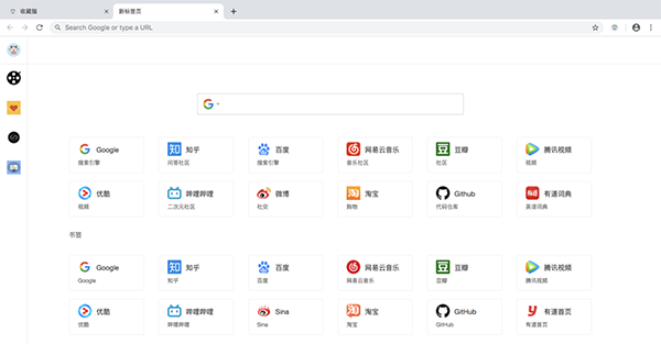 收藏猫插件是一款可以帮你管理chrome浏览器插件和标签页的工具,该插件之所以好用就是因为它强大的可扩展功能,很多人都在自己浏览器上安装了不少插件,有时候整理起来还挺费时间的,这款插件可以帮你轻松整理浏览器插件,此外还能帮你整理你的标签页,标签页打开太多的时候再也不用担心找不到了。插件符合国人的新标签页,能够快速访问书签,并使主页更加美观和易用,支持哔哩哔哩,腾讯视频,微博,知乎,豆瓣视频下载,而且打开新标签页即可查看所有收藏的书签,使用书签和管理更方便;还提供极简背景桌面,收藏各类优质学习课程,及相关学习群,打开新标签页即可查看所有收藏的书签,使用书签和管理更方便。