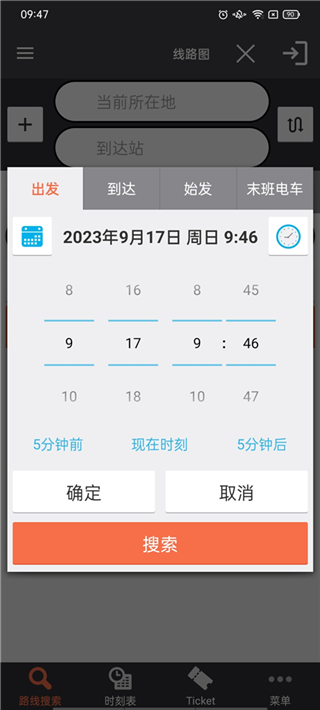 2、来到路线搜索功能,在这里有着多种站点搜索选项,用户可以根据站点进行搜索,支持筛选时间;