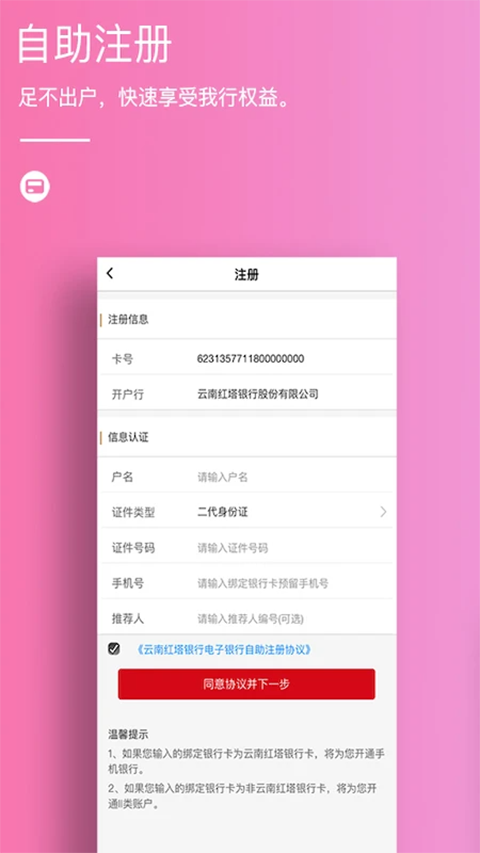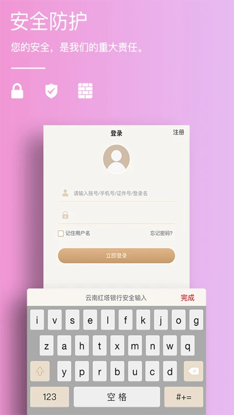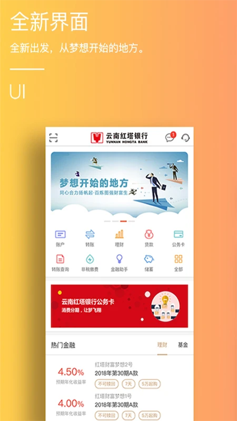 1、全新界面 全新出发,从梦想开始的地方。 云南红塔银行手机银行遵循了“扁平化”的界面设计,力求美观、清爽、简洁、大方,重点信息一目了然,元素排版干净整齐,只为给您带来更好的视觉享受和不一样的全新体验。更迅捷、更强大、更贴心。 2、功能覆盖 包罗万象,手中自有满目琳琅。 云南红塔银行手机银行现已覆盖我行大部分的个人银行业务,包括转账汇款、投资理财、公务卡、网络贷款、生活服务、账户管理、安全中心以及行政专区八大模块,同时还为您提供在线客服、金融助手、金融资讯等贴心服务。 3、全新产品 产品升级,金融服务更上层楼。 我行在金融产品大升级的背景下,云南红塔银行手机银行能够让您及时了解到我行的最新产品。 目前,我行推出了各款自营理财产品、代销理财、财富宝、类余额宝、代销基金、贵金属、消费贷,以及公务卡的更贴心服务,更多内容,请下载应用体验。 4、自助注册 足不出户,快速享受我行权益。 借助二三类账户实现的电子账户为您提供自助注册功能,不必到柜台网点,快速开设云南红塔银行二类账户,立享理财基金、财富宝、贵金属、保险、网贷等多种我行提供的特色服务。 5、安全防护 您的安全,是我们的重大责任。 安全防护大升级,我们采用了多种安全防护措施:签名验签防篡改、数据过滤及清洗、数据脱敏防重复、Session 鉴权及认证、多种数据加密算法、SSL HTTPS 防劫持、设备鉴别与绑定、多重防火墙防护、登录超时控制、手机令牌等,切实保障您的资金安全、数据安全和信息安全。 6、身份鉴别 生物识别,让您安心省心放心。 借助生物识别技术,我们为您提供了指纹登录*的功能,简单快捷,轻松登录。 同样,我们也实现了人脸身份核查、OCR 配合核身、无纸化电子签章等功能,高效安全地实现信息核对,快速完成业务办理。 *注:指纹登录仅在支持指纹识别的设备上使用。 7、更多发现 曲径通幽,更多精彩待您发现。 云南红塔银行手机银行除了上述介绍的功能之外,还有更多精彩内容和丰富功能待您体验和发现,希望您能够对我们的产品满意!云南红塔银行属于什么银行