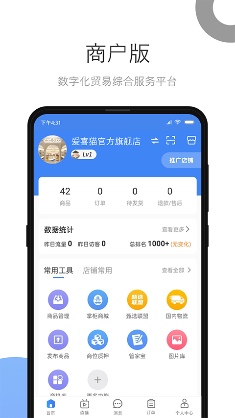 1、图表展示:采用图表的方式展示出具体数据,让商家可以更直观地了解店铺收益。 2、订单数据:实时记录平台接收的所有订单,方便用户之后查看订单详情。 3、店铺数据:自动核算门店每天的成交金额、成交单数以及每周总的收益。 4、商品管理:实时核算商品销售情况,清点商品库存避免出现断货销售的现象。 5、带货视频:拍摄日常销售商品的视频进行宣传,让客户可以放心地到自己的门店购买商品。 6、客户管理:记录门店的所有客户信息,方便商家统一管理,可以快速地找到需要了解的客户。小商品城卖家版app使用指南