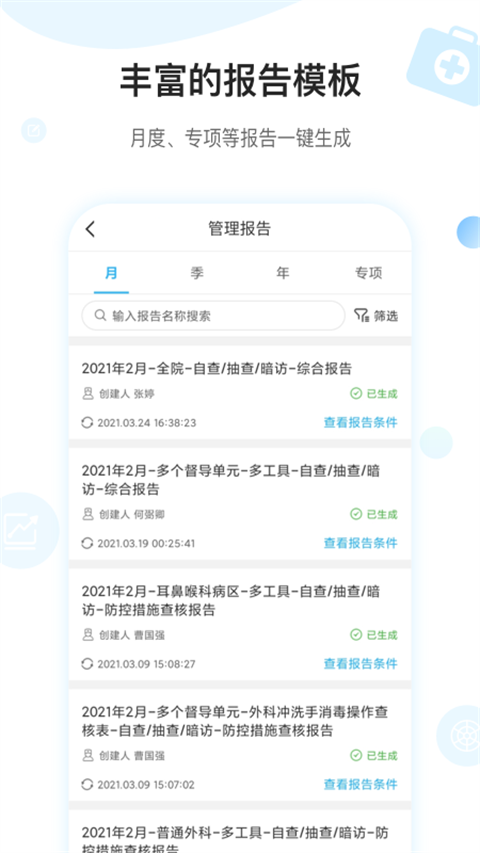 1、提供多维度数据统计报表和图表分析。 2、完善定时定内容定岗位学习考试功能。 3、完善PDCA持续改进循环功能,自动统计识别感控风险。 4、新增全院院感督查指标库,协助医院快速建立质控评价体系。感控工作间怎么换医院