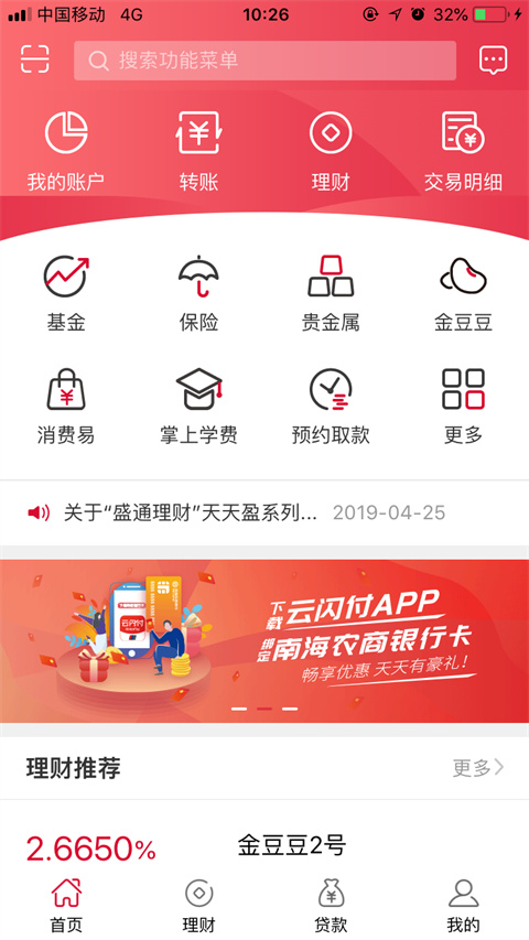 1、选用扁平化设计视觉传达设计,友善美观大方的页面让操控变得越来越舒服、简易,帐户收入支出剖析、资产负债率让资本一目了然。 2、全方位应用指纹验证、面部识别等前沿科技,智能搜索、零距离转账功能为客户带来高效率的服务项目。 3、融合转账功能,应用智能化转账更便捷,股票基金、结售汇功能让申请办理业务流程更轻轻松松,手机培训费、团费交费感受最新的当代手机金融服务体会。 4、手机网银客户参加网上每日任务,获得专享積分,提取巨奖,与此同时依照本行顾客级别(一至五星),展现顾客专享评星利益。南海农商银行手机银行客户端推荐理由