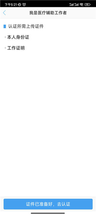 3、确认准备好的证件资料,点击去认证。
