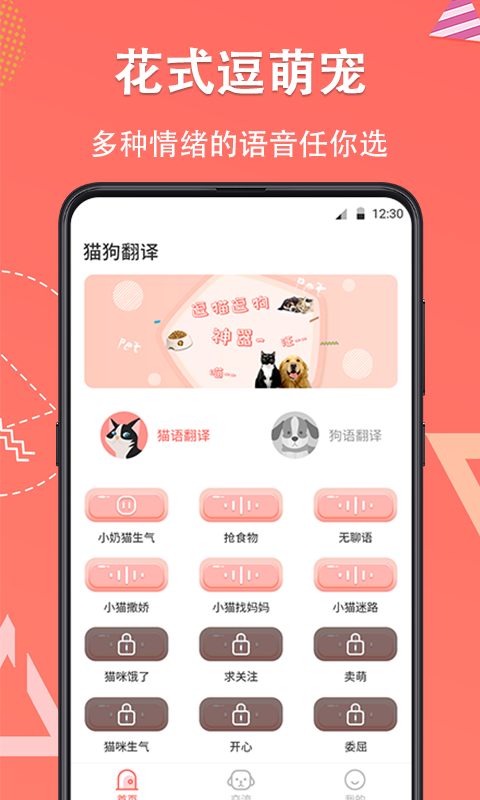 【人声翻译】将铲屎官的声音转化成狗语猫语,让人狗人猫交流更轻便 【宠物翻译】将狗语猫语翻译成人话,让铲屎官更能体会汪星人和喵星人的想法更新日志