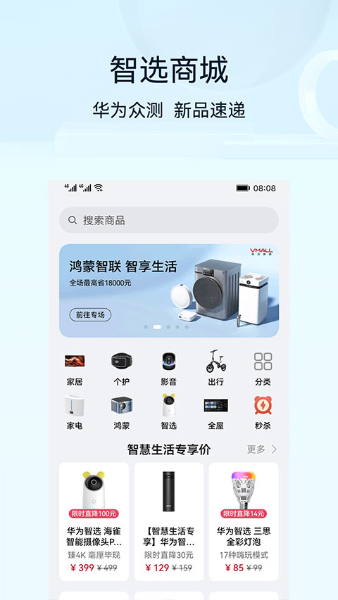 1、智选商城 华为众测,新品速递。 2、丰富内容 贴心助手,娱乐生活。 3、智慧场景 百变场景,随你而动。 4、时刻惊喜 更多玩法,等你发现。更新日志