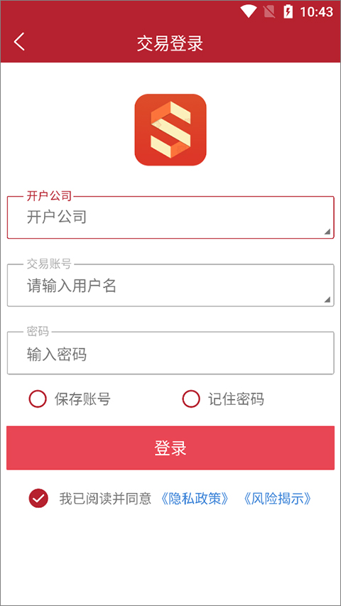 4、在打开的交易登录页面中输入开户公司,交易账号和密码即可查看相关产品收益。