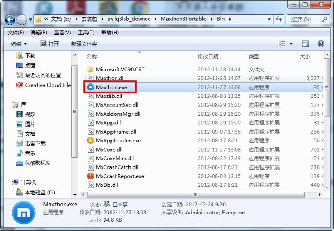 一、程序免安装,用户下载完成解压安装包,进入“Bin”文件夹,点击“Maxthon.exe”即可打开浏览器