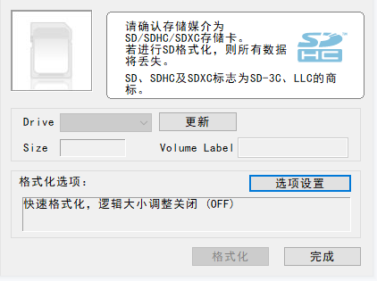 1、Panasonic SDFormatter是松下出品的一款比较好用的SD卡格式化工具,能够格式化SD存储卡和SDHC记忆Card(SD/SDHC 存储卡),使用遵照SD存储卡规格来格式化,并提供对SD存储卡的更快和容易的操作方式。