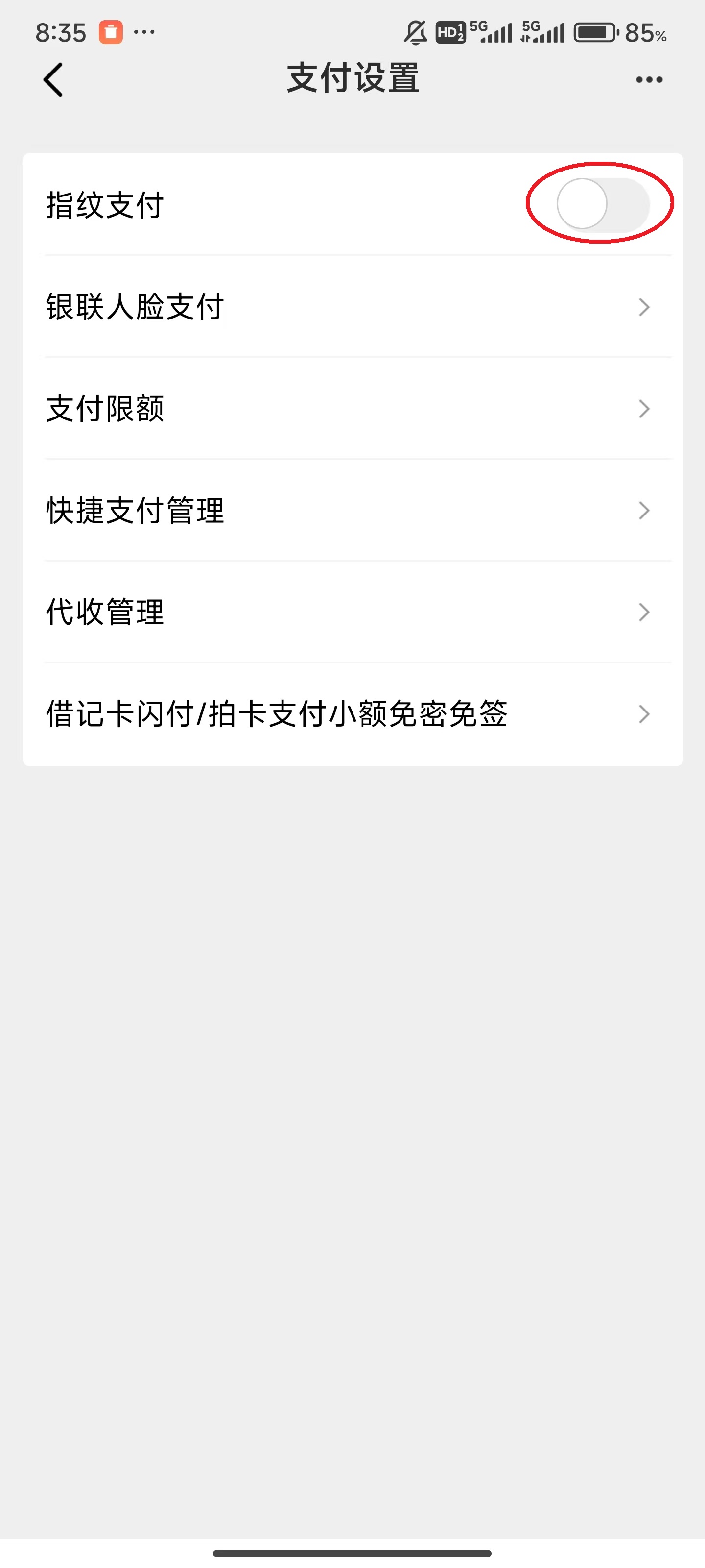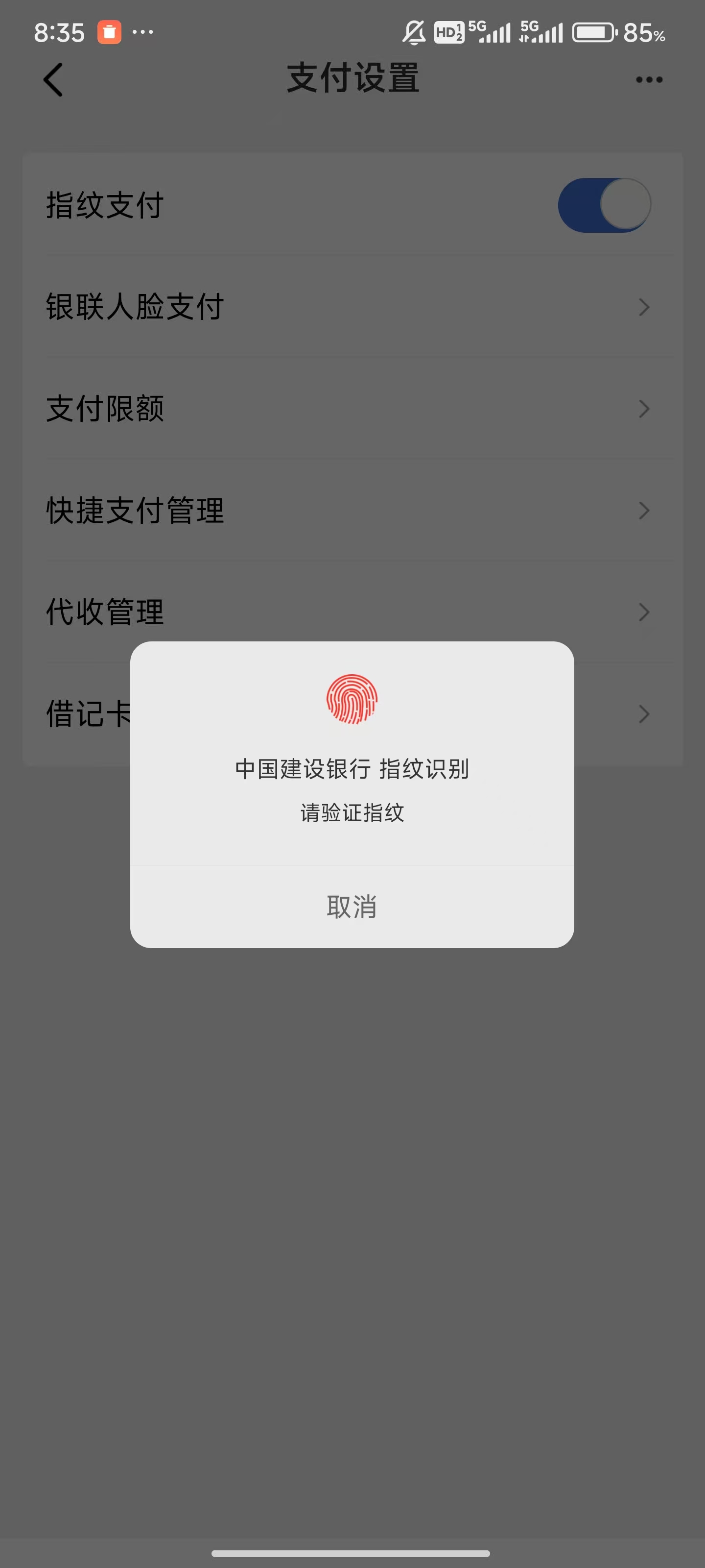 6、最后将手指放在指纹验证处,验证完成后,就完成了指纹的支付功能。