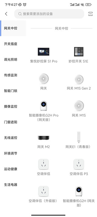 3、多种设备分类清晰,可一目了然的进行选择,你也可以通过搜索需要添加的设备;