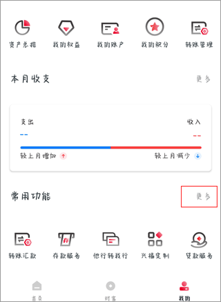 1、在“我的”页面,常用功能栏,找到“更多”;