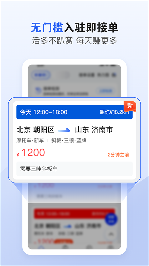 1、语音提醒,快速抢单 2、在线接单,轻松找活 3、页面简洁,快速上手 4、收入明细,一目了然软件亮点