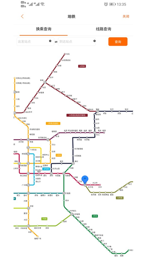 6、点击地铁,用户可输入自己的起始点和终点,它就会为用户提供最好的地铁出行路线。