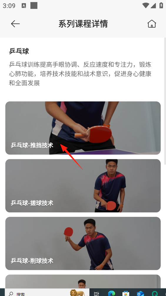 4、在下方直接点击挑选喜欢的乒乓球课程。