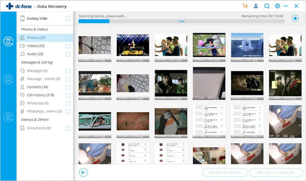 如果您的手机没有root,dr.fone将提供两个选项:扫描已删除的文件和扫描所有文件。扫描所有文件将花费更长时间,但会更彻底地扫描文件。