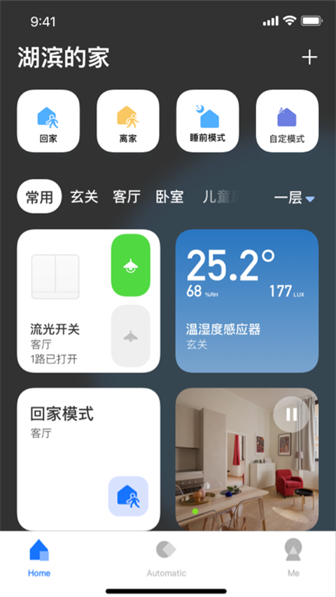 全屋布局多处传感器,时刻感觉你的存在。存储你的生活习惯,根据你的习惯设定设备的智能开关时间。除此,还可远程控制设备开关,真正做到智能节能。