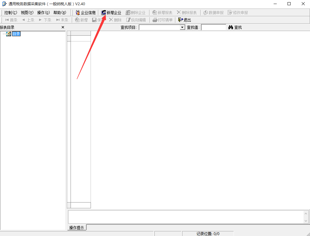 1、在目录栏选择按鼠标右键,从弹出菜单中选择“新增企业”,或者点击工具栏中的“新增企业”图标,或者选择系统主菜单“操作-新增企业”。