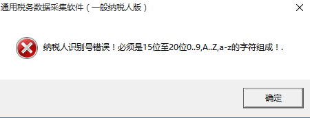 3、纳税人识别号必须为15位或18位数字或字母数据,若用户输入位数不符要求或内容不符,则系统提示: