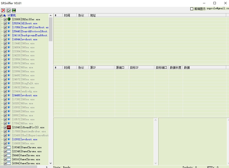 1、程序免安装,用户仅需双击“SRSniffer.exe”即可开始此程序2、点击计算机左边的勾可去掉默认的全选功能