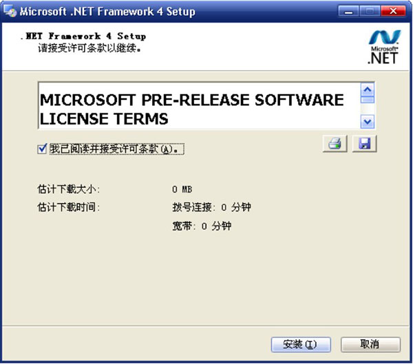 2、选择“我接受许可证协议中的条款”,点击下一步,如果您的电脑没有安装.NET Framework 4.0,将进行.NET Framework 4.0安装。